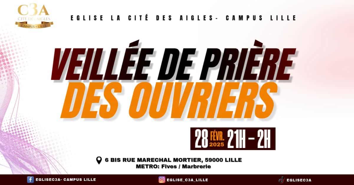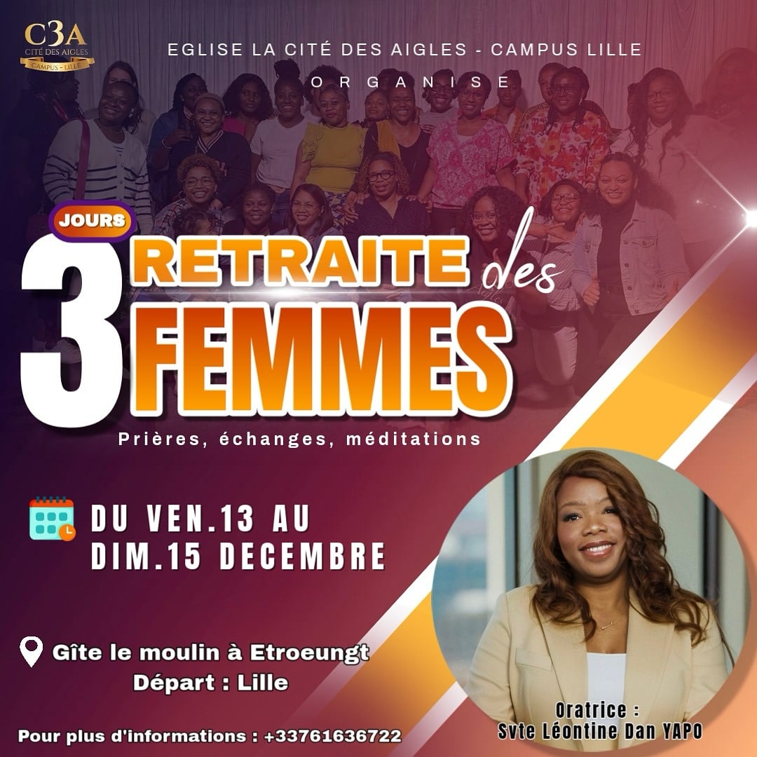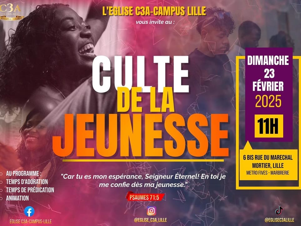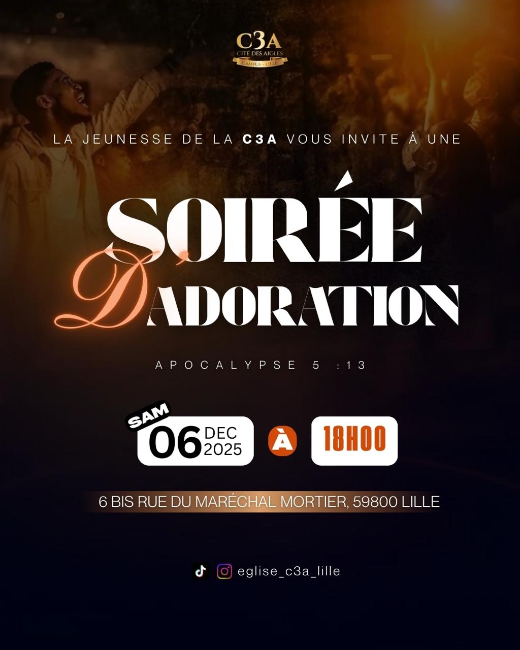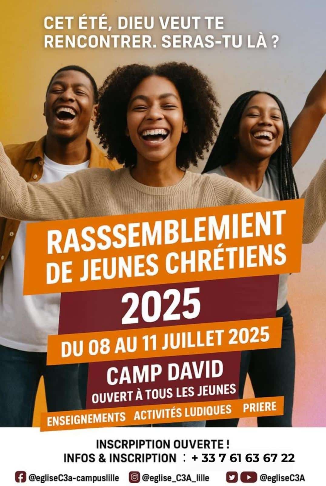 Nos activités Retrouvez nos différentes catégories d’activités. Bien d’autres sont à venir… Shilo (soirée de la travesée) Pâcques Pentecôte Culte des nations Culte de la rentrée Culte des femmes Culte de la jeunesse Camp de prière École du mariage Veillée de prière des ouvriers C3A Soirée d'adoration Camp David Ateliers professionnels Temps de proclamation (chaque début de mois) Temps de méditation Retraite des femmes Évangélisations Veillée de prière Rejoins-nous lors de nos futures activés Évènements à venir